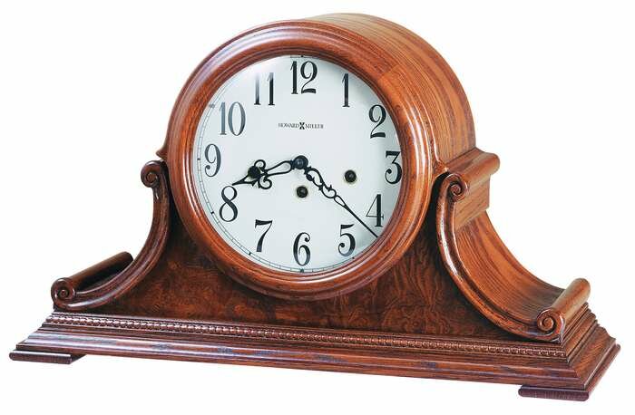 The Hadley Mantel Clock by Howard Miller has a Oak Yorkshire finish on select hardwoods and veneers.
