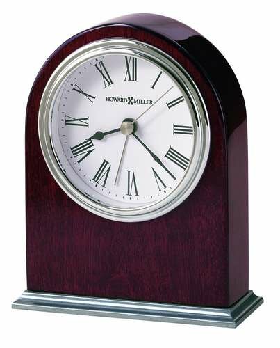 The Walker Table Clock by Howard Miller is a High-gloss Rosewood Hall-finished alarm clock.