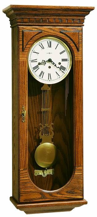 The Westmont Wall Clock by Howard Miller is finished in Oak Yorkshire on select hardwoods and veneers.