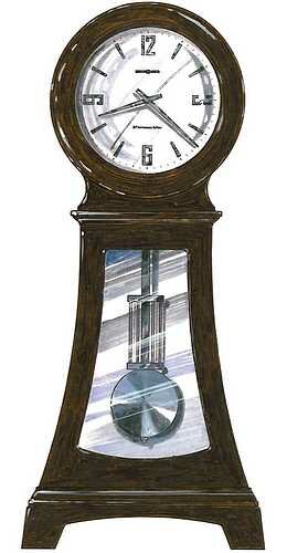 The Gerhard "84th Anniversary Edition" Mantel Clock by Howard Miller is finished in Chocolate on select hardwoods and veneers and features a mirrored back panel and plain glass in the lower door. This contemporary wooden mantel clock also features a white dial with embossed, platinum brass-finished Arabic numerals and hour markers, a black minute track, a wood bezel, platinum brass-finished hour and minute hands, and convex glass.