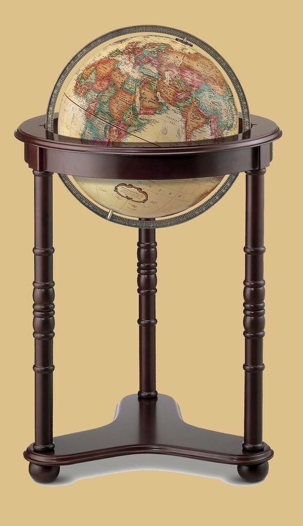 Replogle Westminster 16" Antique Globe - 22813.  Blurring the line between globe and furniture accessory. The hardwood base with dark cherry finish enhances the vibrant colors of our 16" antique-ocean globe with metal die-cast meridian. This globe lends richness to its surroundings.