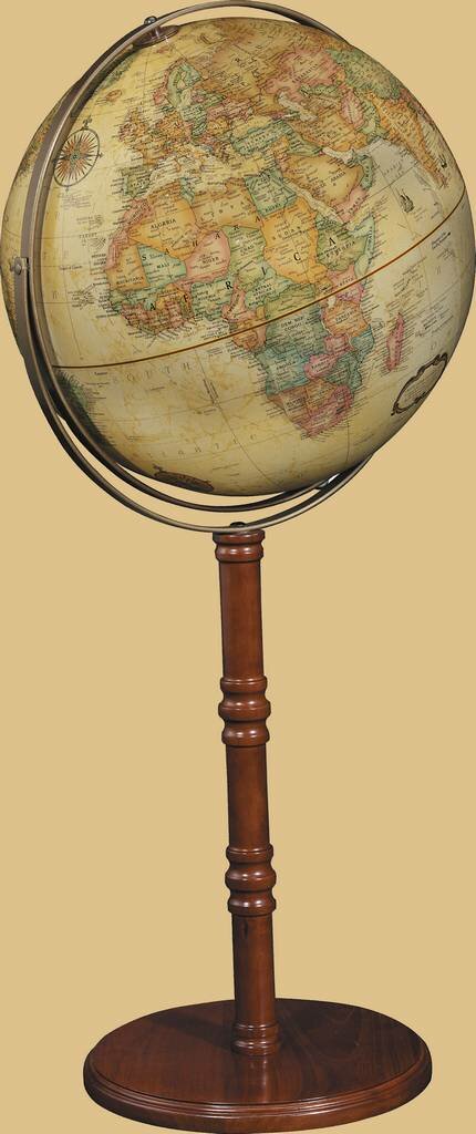 Replogle Commander 16" Antique Globe - 22839.  High atop its handsome wooden floor stand, the Commander II summons the attention and admiration of all who see it. Featuring a 16" diameter, this antique-style globe combines cartographic excellence with style, lending grace and intrigue to any environment. By simply removing the centerpost, it converts from a 38" floor globe to a convenient table globe.