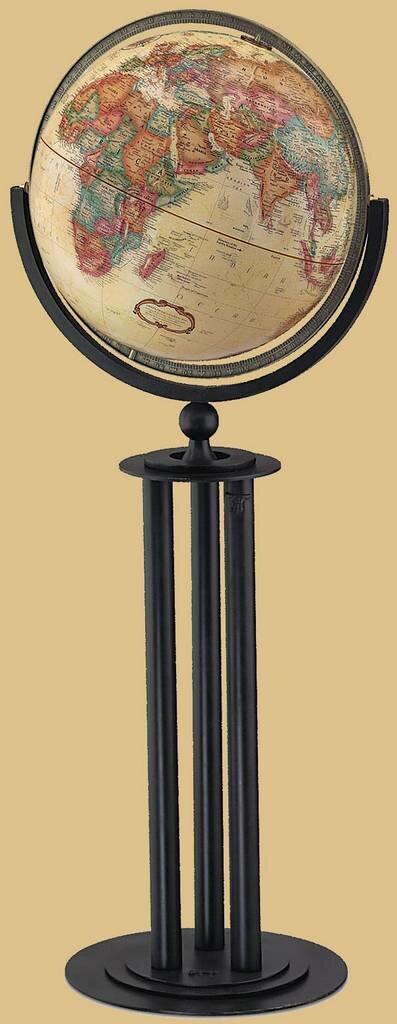 Replogle Forum 16" Antique Globe - 22844.  Since ancient times, the column has stood as a functional and decorative standard. Designer Tom Torrens has fashioned an all-metal globe base reminiscent of that form, yet crafted to reflect modern design. History, architecture, and culture come together in a unique way with this 16" antique-ocean globe.  Designed by Tom Torrens.