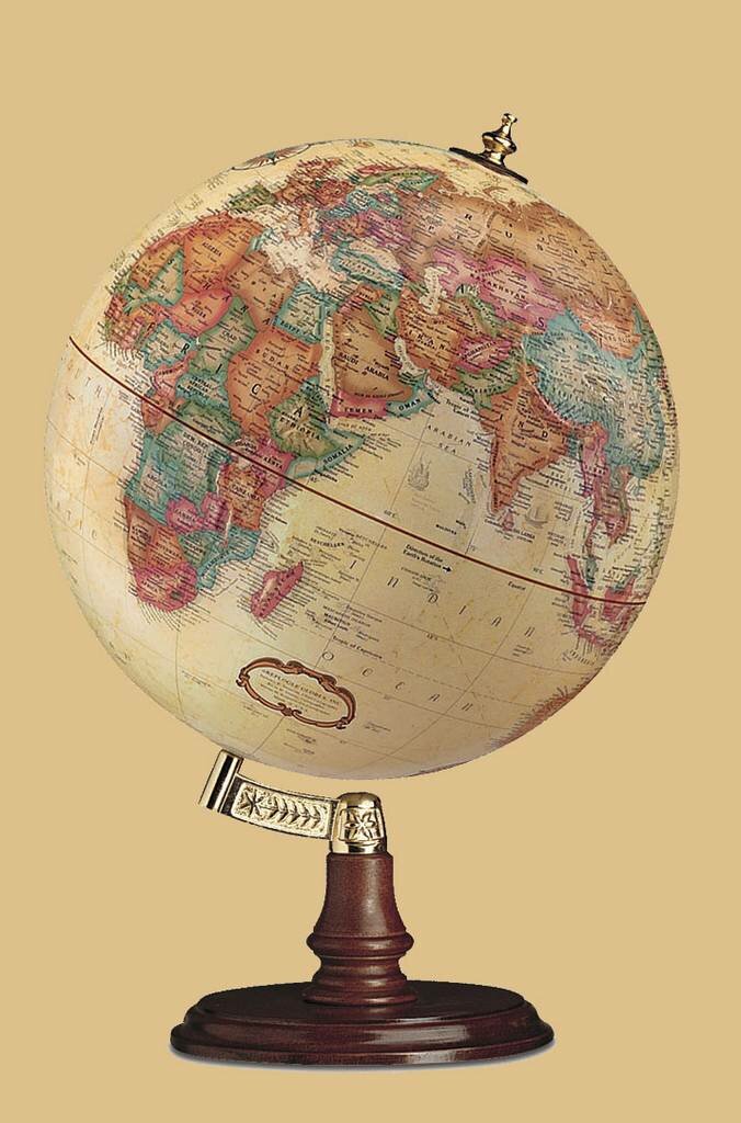 Replogle Cranbrook 12" Antique Globe - 31400.  Without a meridian, your view of the world is unobstructed. This 12" diameter globe includes raised-relief geographic features and antique ocean. Burnished brass-plated inclination mounting and finial complete the design.