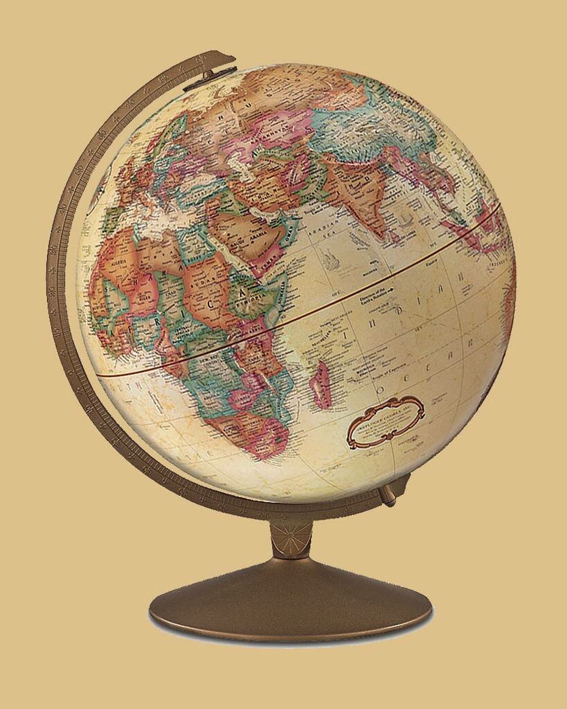 Replogle Franklin 12" Antique Globe - 31501.  The Franklin's 12" antique ocean globe features an antique-finished base. Contains more than 4,000 place names and distinctive political boundary markings.