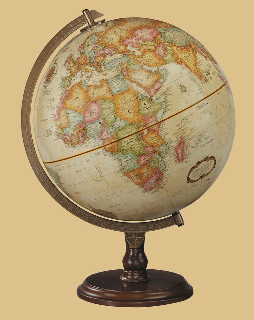 Replogle Lenox 12" Antique Globe - 31536.  Classic, enduring appeal. The gracious combination of antique-ocean 12" globe ball, solid hardwood base with rich walnut finish, and painted die-cast semi-meridian make this globe the perfect choice for any setting.