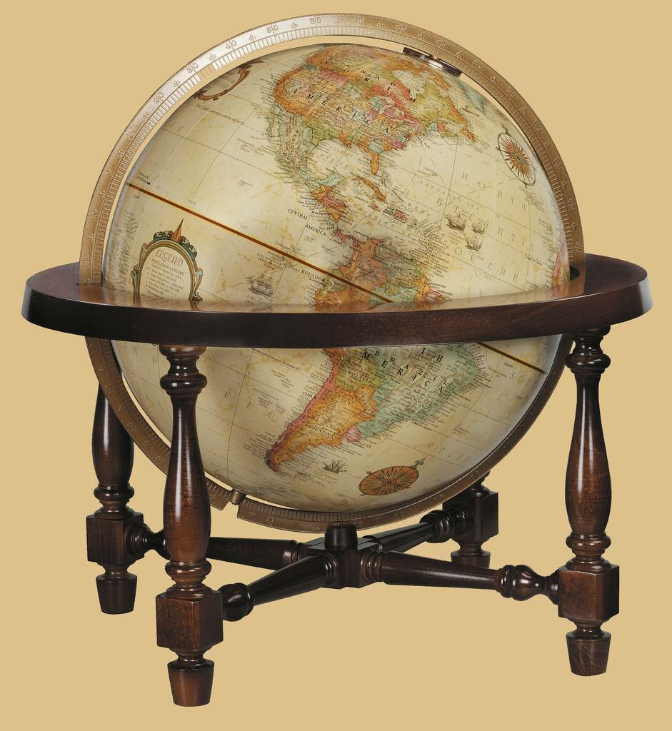 Replogle Colonial 12" Antique Globe - 31700.  A solid hardwood cradle with lustrous walnut finish provides the perfect setting for this 12" globe.  The antique ocean and full die-cast meridian add Old World appeal to a globe with modern geographical boundaries.