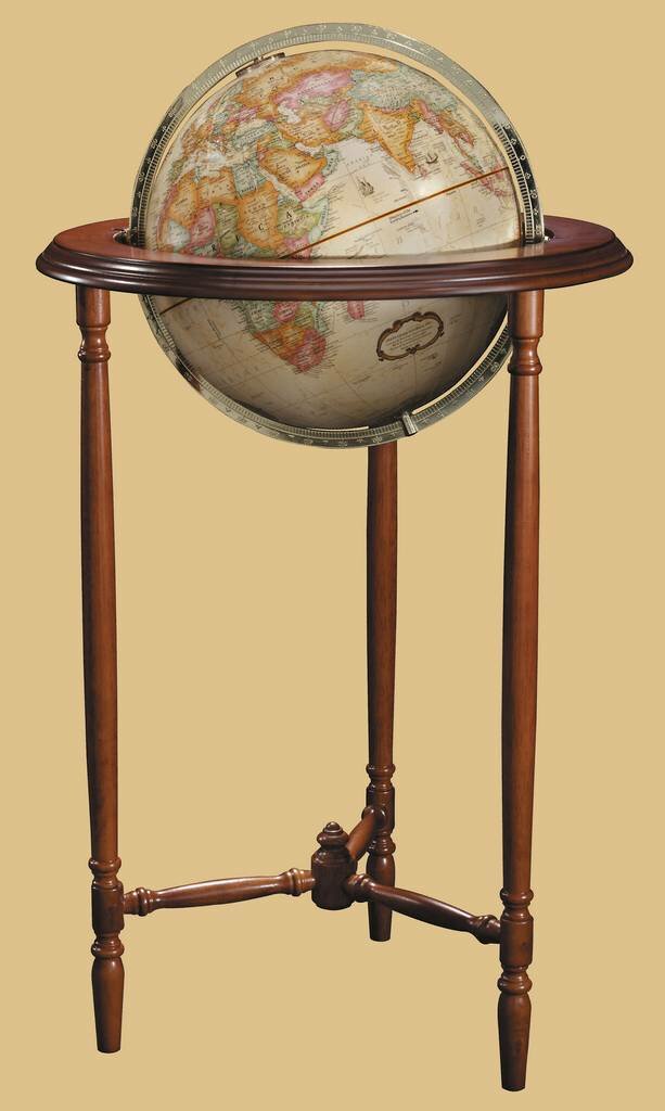 Replogle Saratoga 12" Antique Globe - 31712.  Understated and elegant, the Saratoga 12" antique-ocean globe incorporates many exceptional details, including a distinctive solid wood floor stand and brass-plated meridian. Outstanding accent piece.