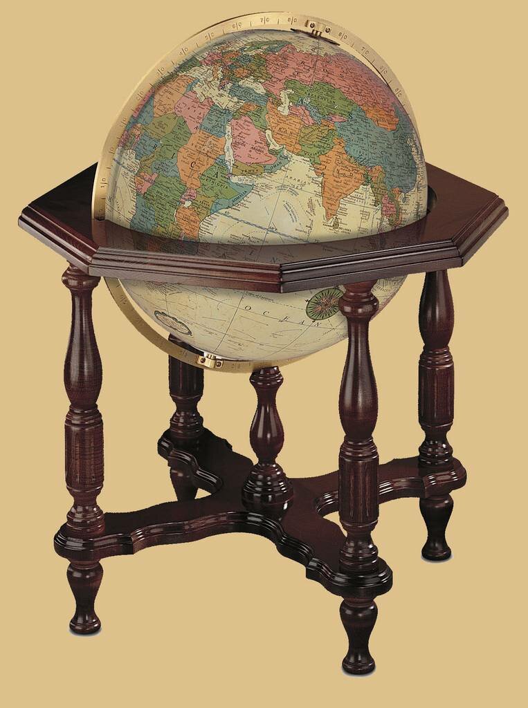 Replogle Statesman 20" Antique Illum Globe - 65025.  The antique-ocean Statesman features a hand-applied, hand-cut map.  This 20" diameter illuminated globe is mounted on a striking hardwood base. Classic design details, solid brass engraved meridian, and light control make this a bold addition to any environment.